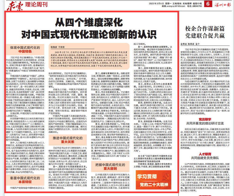 《温州日报》:从四个维度深化 对中国式现代化理论创新的认识