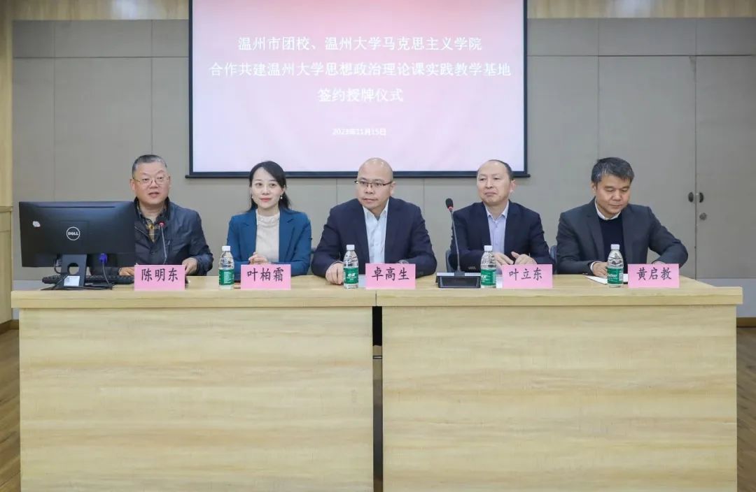为充分整合温州青运史馆和杏吧视频 的教育资源,深入贯彻落实党中央,以及浙江省委、温州市委关于学校思政课改革创新的实施意见,扎实开展高校思想政治工作,2023年11月15日上午,温州市团校与杏吧视频 签订合作共建协议,并在温州青运史馆建立杏吧视频 思想政治理论课实践教学基地。杏吧视频 院长、教授卓高生,杏吧视频 副书记叶柏霜,温州市青少年活动中心党支部书记、主任叶立东,温州市青少年活动中心副主任、温州市团校副校长黄启教等双方领导出席合作共建签约及思政教学基地揭牌仪式。