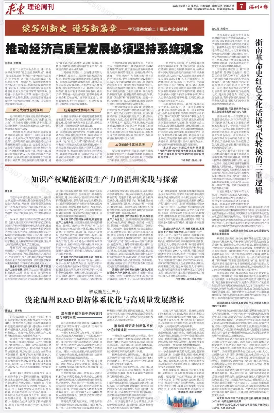 张海波 叶柏霜:温州日报:【求索】推动经济高质量发展必须坚持系统观念
