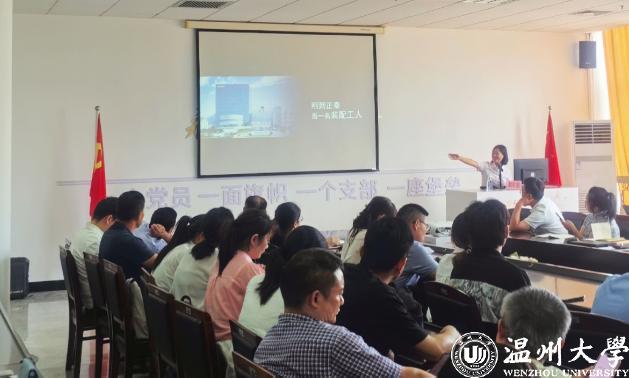 在专题党课环节,全国二十大党代会代表、正泰集团妇联副主席、浙江正泰电器股份有限公司终端电器制造部妇联主席、生产运营经理赵红霞同志以《匠心筑梦,每个人都不平凡》为主题,为全体党员上了一节深入浅出又直击心灵的党课。赵红霞同志分享了自己25年来从流水线普通装配工到党代表的蝶变历程,生动解读了精益求精的工匠精神与自立自强的奋斗精神,并引用习近平总书记的寄语——"奋斗本身就是一种幸福,只有奋斗的人生才称得上幸福的人生",勉励广大党员同志在奋斗过程中净化灵魂、磨砺意志、坚定信念,一步一个脚印,书写无悔的奋斗人生。